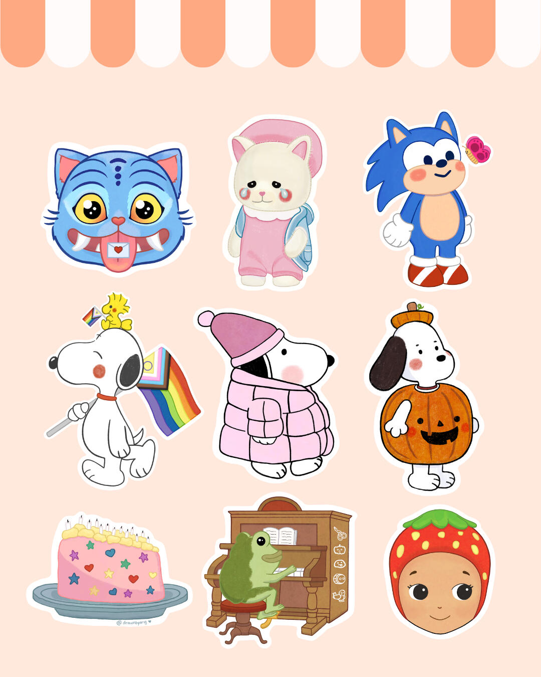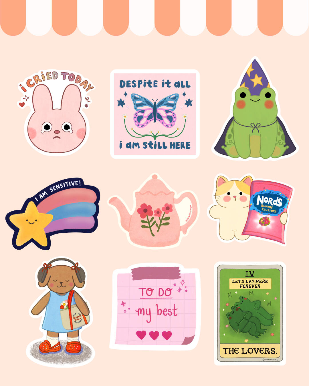 Hi, I'm Angie! I'm an artist based in Tampa, Florida. Drawn by Ang is a small shop specializing in cute and whimsical stickers, stationery, and other colorful goodies. My artwork revolves around themes of friendship, nostalgia, and childhood memories in hopes to bring joy to others. ૮ ˶ᵔ ᵕ ᵔ˶ ა